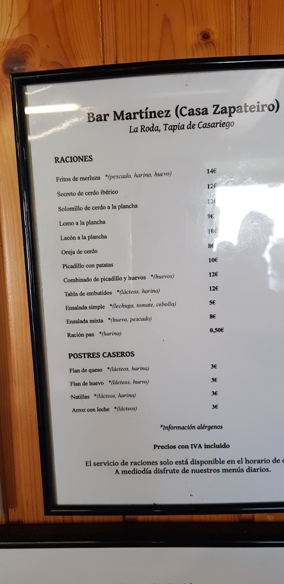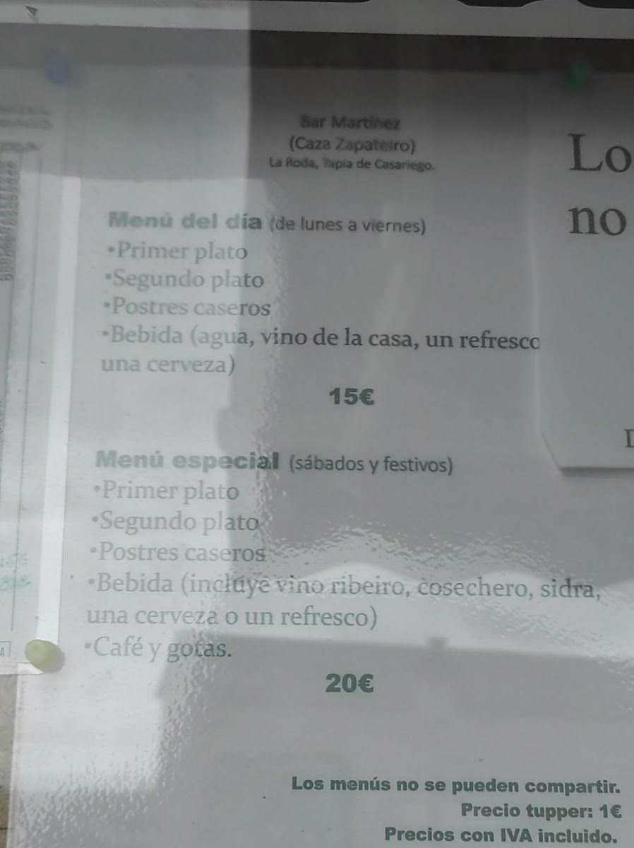 Bar Martinez (Casa Zapateiro) Menu
